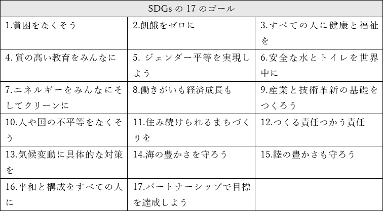 SDGsとは、2015年9月の国連サミットで採択された「持続可能な開発目標(Sustainable Development Goals)」のことです。2030年までに持続可能でより良い世界を実現するために、社会が抱える様々な問題の解決を目指し、17のゴールと169のターゲットで構成されています。