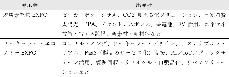 「サステナブル経営 WEEK」は、「脱炭素経営 EXPO」と「サーキュラー・エコノミーEXPO」から構成されています。